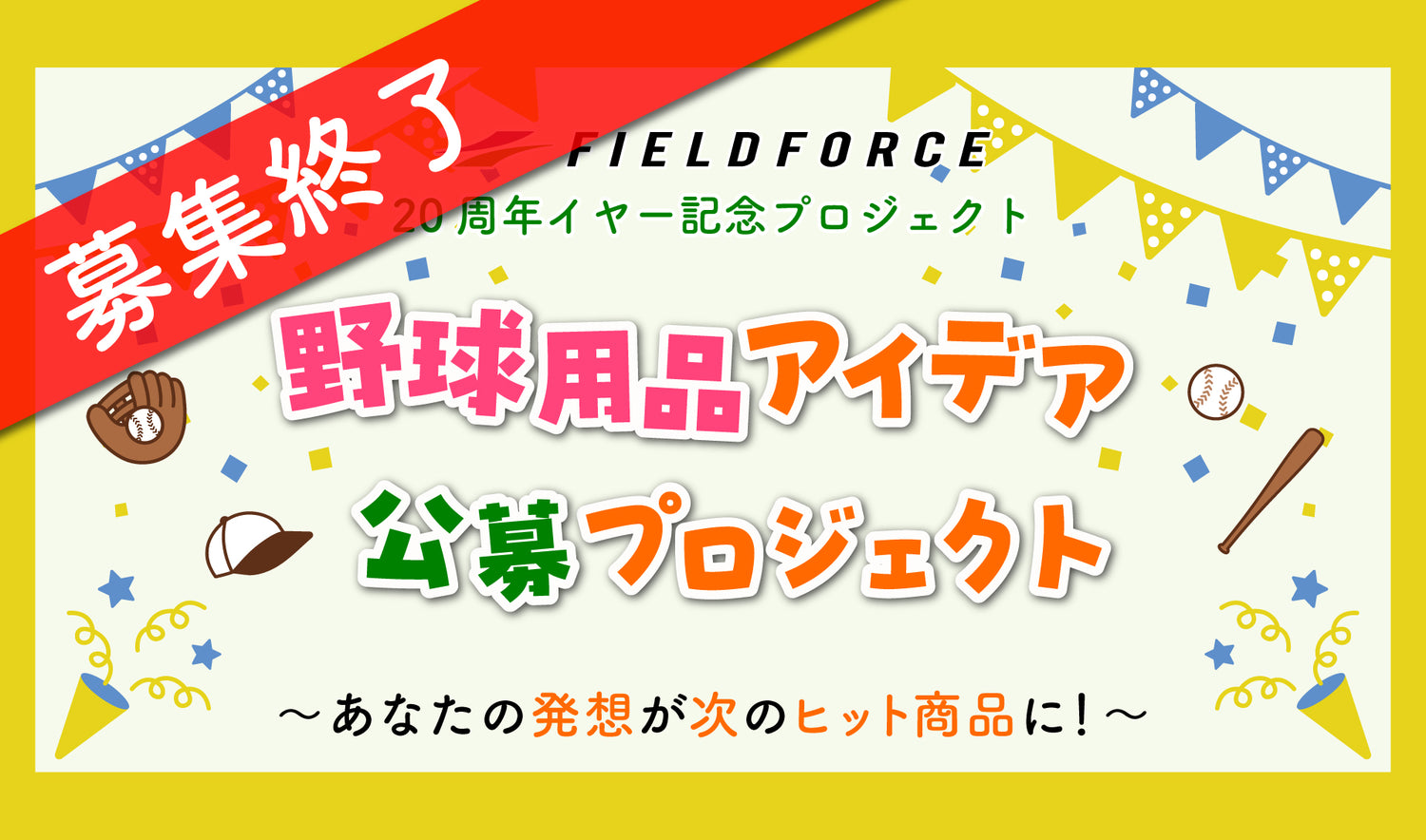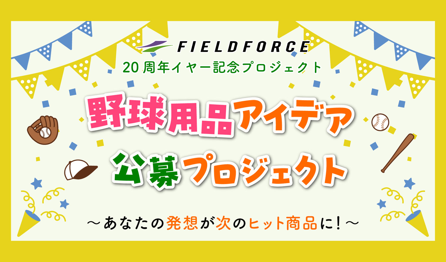 株式会社フィールドフォースは、「野球用品アイデア 公募プロジェクト」へのご応募を通じてご提供いただいた個人情報を、以下の通り適切に管理し、利用いたします。
