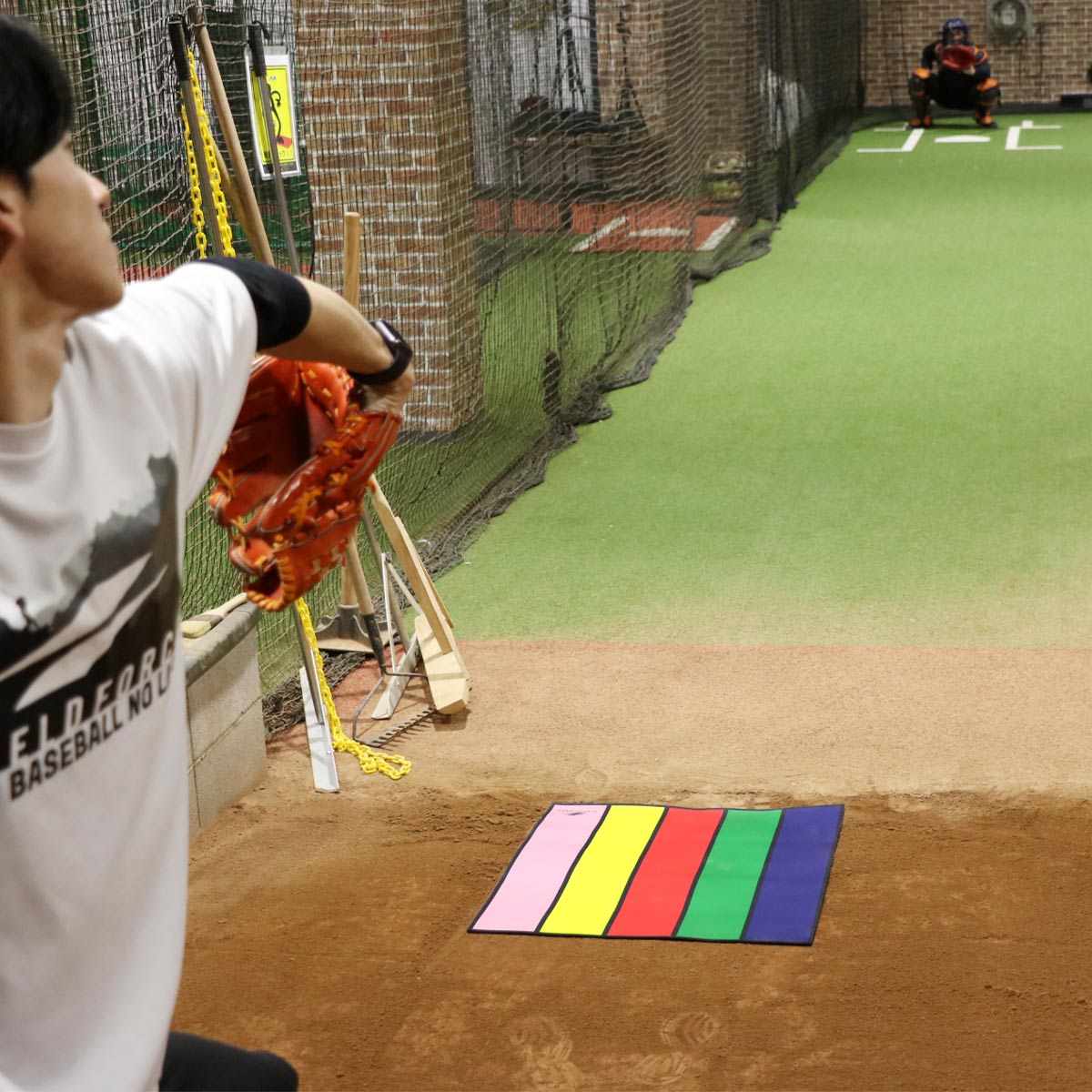 「赤の低めを通す」「外角の青を狙う」など、色でコースを具体化することで、迷いなく腕を振れるようになり、制球力が向上に役立ちます。