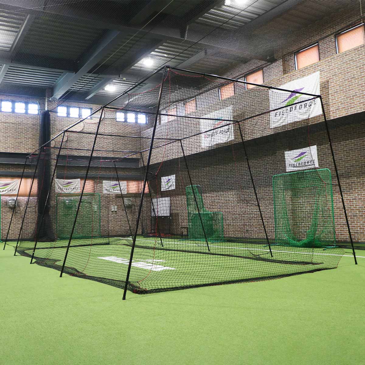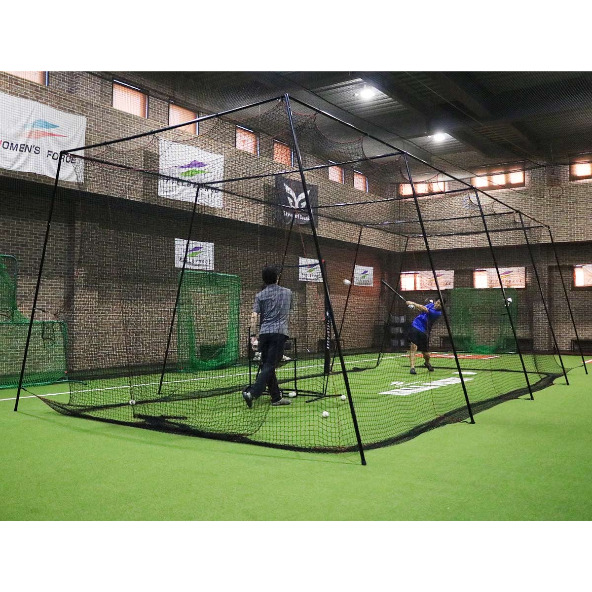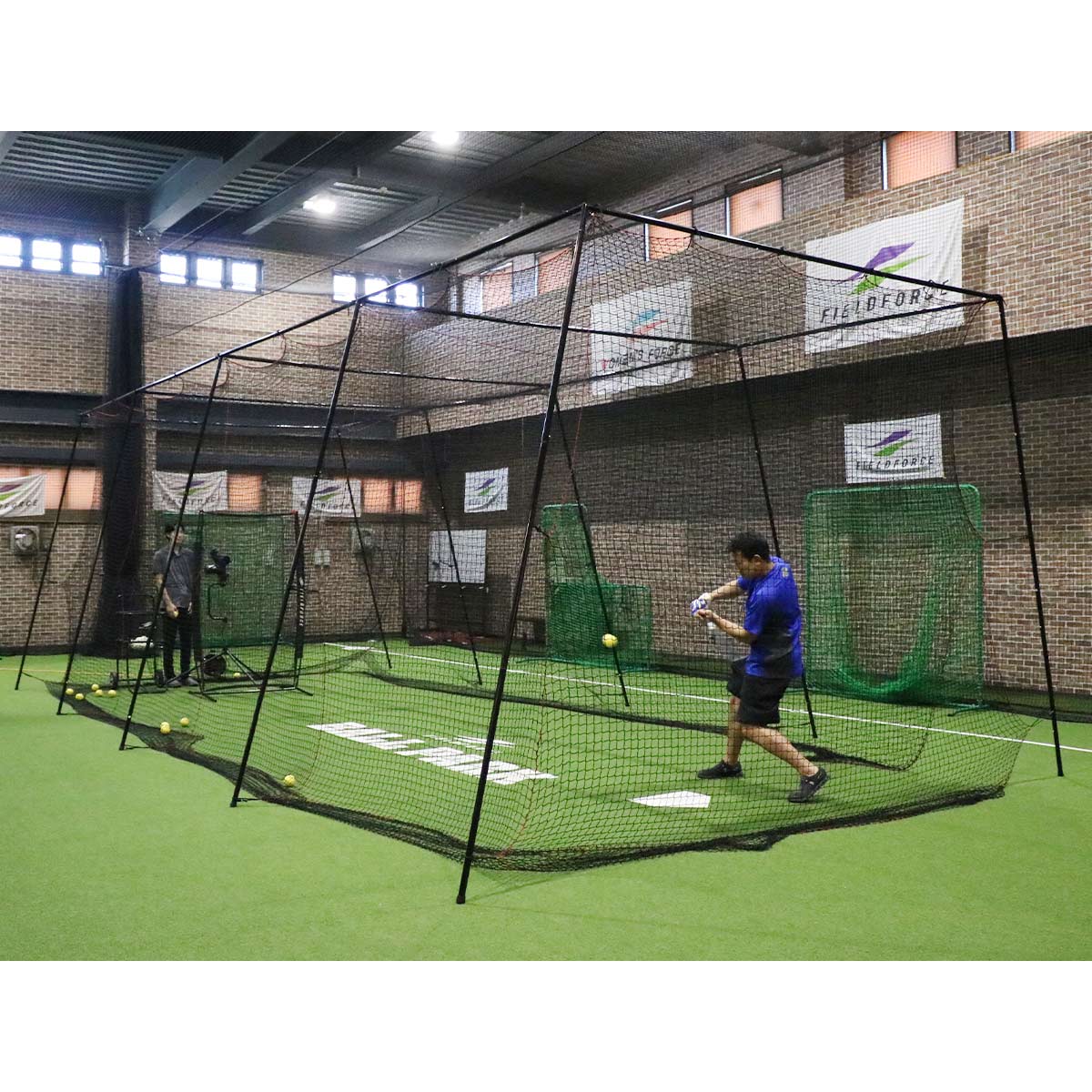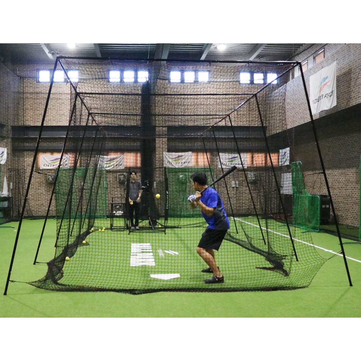 簡易版バッティングケージ内で、小型アーム式ピッチングマシンやフォースマシンを使用することで、練習効率もアップ!